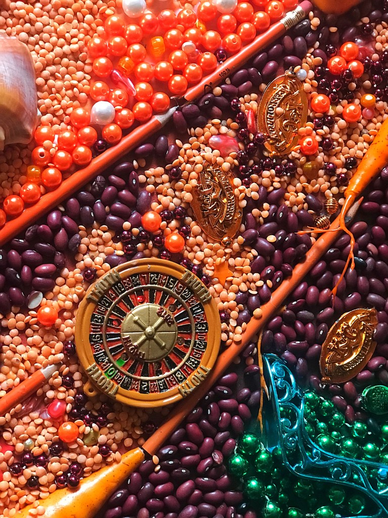 The next step was a LONG one separating thousands and thousands of beads, then catagorizing by colour.