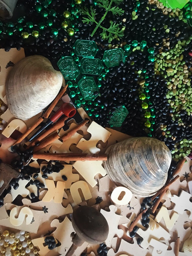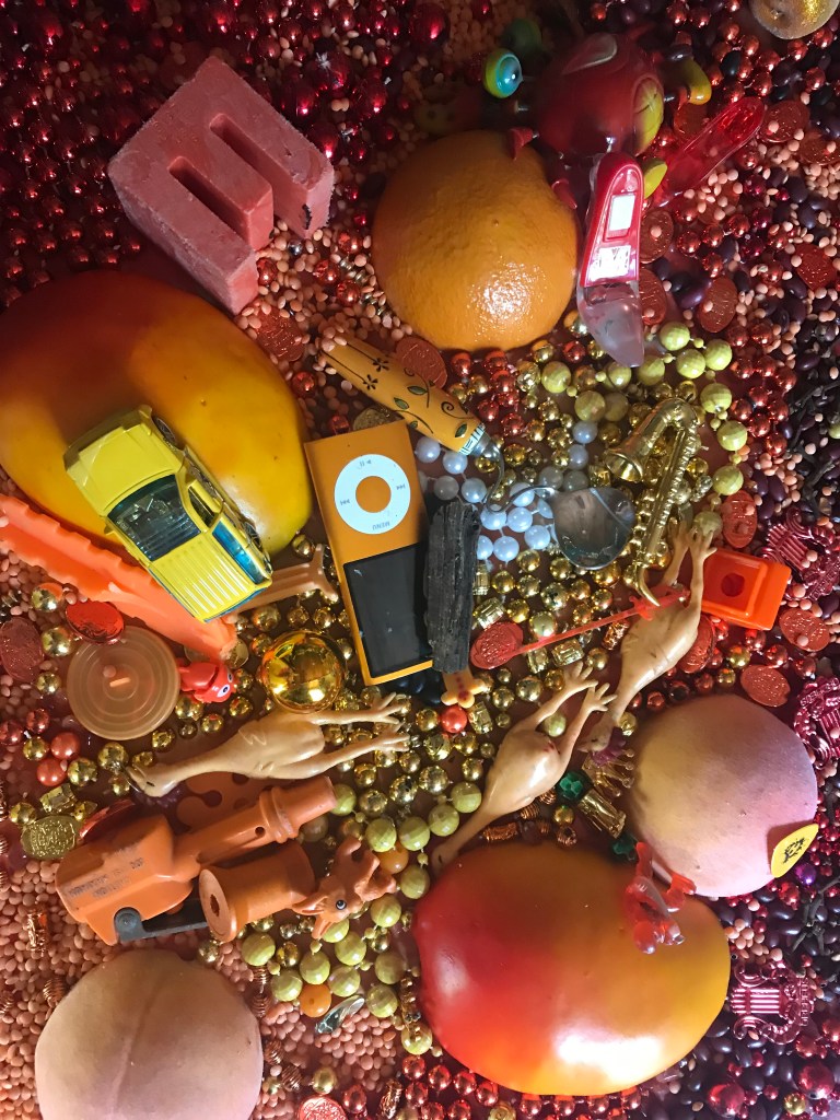 I also asked locals if they would empty their junk drawers for me, because I needed LOTS of trinkets for this piece. I am very grateful to the people that contributed. Thank you!